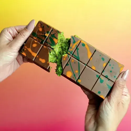 DUBAI STYLE CHOCOLAT PISTACHE est la rencontre parfaite entre la gourmandise du chocolat à la crème de pistache et la rondeur d'une liqueur.